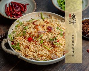 火腿酱海鲜拌面